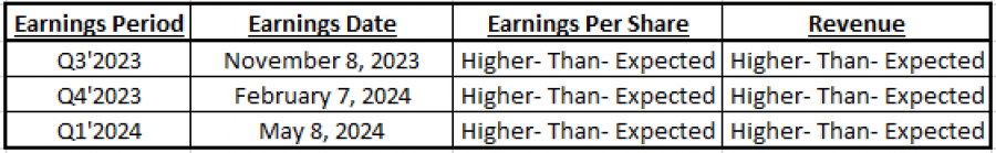- DOGAĐAJ (POTVRĐENO: SREDA, 31. JULA NAKON ZATVARANJA TRŽIŠTA): REZULTATI U 2. TROMESEČJU. Očekuje se da će kompanija u drugom tromesečju ostvariti prihod od 904 miliona dolara i neto prihod od 358 miliona dolara. U poslednja tri tromesečja, ARM je sva tri puta premašio smernice zarade i prihoda. Kompanija je izašla u javnost u septembru 2023, a objavila je rezultate samo za 3. tromesečje 2023, 4. tromesečje 2023. i 1. tromesečje 2024.