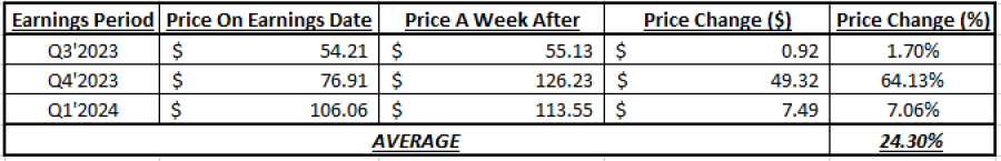 - U PROSEKU JE RASTAO ZA 24,30% U SEDMICI NAKON OBJAVLJIVANJA FINANSIJSKOG IZVEŠTAJA