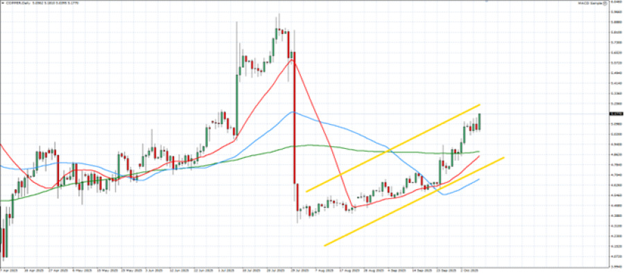 - UZLAZNI TREND I OPORAVAK OD POČETKA AVGUSTA 2025: Cene bakra se kreću u uzlaznom trendu od početka avgusta, kao što je prikazano na dnevnom grafikonu u nastavku. Međutim, i dalje postoji rizik od potencijalnog proboja ispod te razine ako se promene tržišni uslovi.