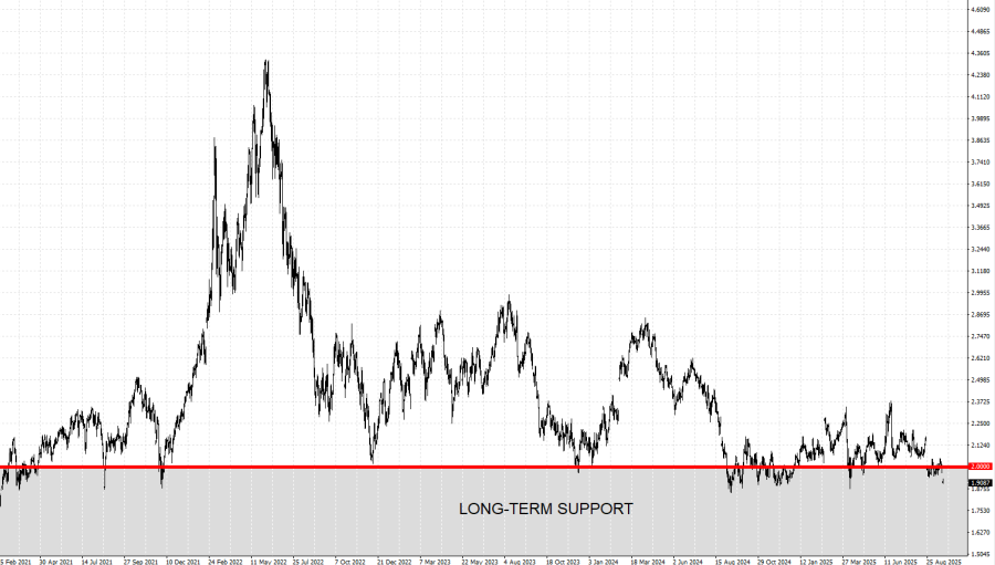 - ZONA DUGOROČNE PODRŠKE OKO PSIHOLOŠKE GRANICE OD 2 USD: Cena benzina je nedavno testirala nivoe oko 2 dolara, koji deluju kao zona podrške od početka 2021.