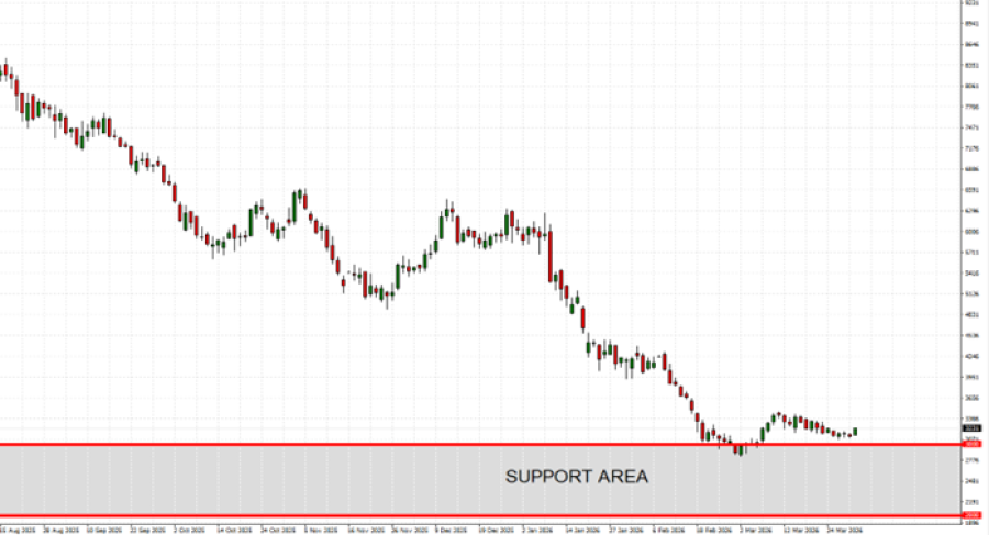 - 2. MARTA 2026: CENE KAKAA DOSEGLE SU NAJNIŽU STOPU OD APRILA 2023. (2.834 USD). Od tada se cena kreće iznad tih nivoa.