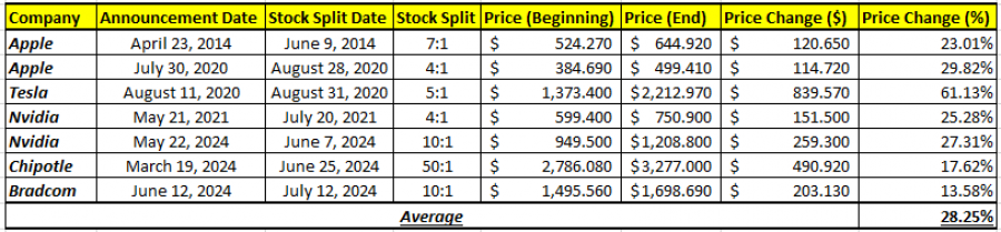 - POTENCIJALNE NAJAVE: Najave o podeli akcija dešavaju se uglavnom u vreme objave tromesečnih rezultata. Na primer, NVIDIA je najavila svoju poslednju podelu akcija u razmeri 10 prema 1 tokom objave rezultata za 1. tromesečje 22. maja 2024. META: SLEDEĆI FINANSIJSKI IZVEŠTAJ: 31. JULA 2024. NAKON ZATVARANJA TRŽIŠTA.