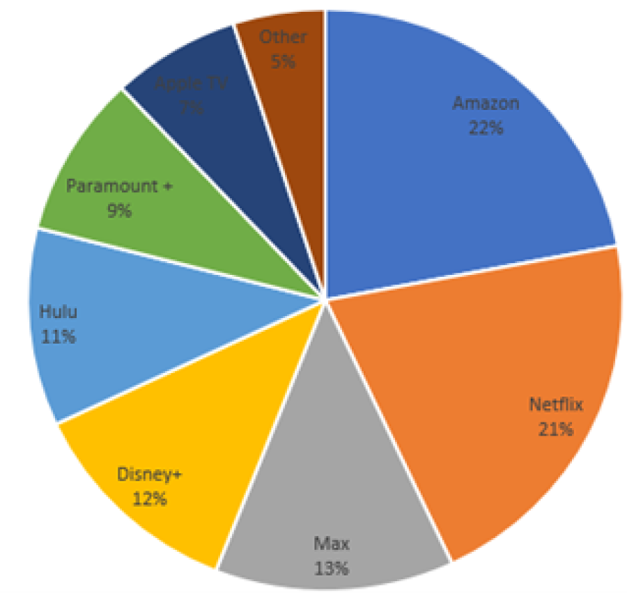 - NETFLIX je drugi najveći striming servis u SAD, s tržišnim udelom od 21%, odmah iza Amazon Primea koji drži 22%. Predviđa se da će udeo kompanije biti 23%, što je samo iza Amazon Primea (24%).