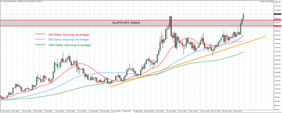 - SREDA, 31. DECEMBRA, 1:30 GMT, 2025: KINESKI INDEKS POSLOVNE AKTIVNOSTI U PROIZVODNOM SEKTORU (PROSINAC). Rezultat iznad očekivanja signaliziraće poboljšanu proizvodnu aktivnost u Kini, najvećem svetskom potrošaču paladijuma. Rastuća dinamika proizvodnje ukazaće na jačanje industrijske i automobilske potražnje, što će podržati optimističnu prognozu cena paladijuma.
