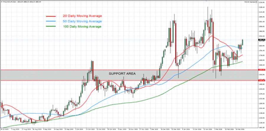 - CENA PALADIJUMA IZNAD 20-DNEVNOG, 50-DNEVNOG I 100-DNEVNOG POKRETNOG PROSEKA: Cena paladijuma ostaje iznad svojih dnevnih pokretnih proseka, što ukazuje na potencijalni uzlazni trend. Trend se može preokrenuti ako paladijum padne ispod tih proseka.