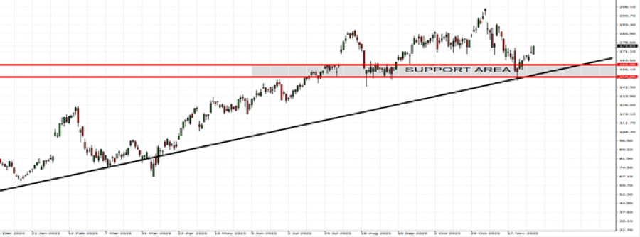 - JAKA ZONA PODRŠKE KREĆE SE OD 160 DO 150 DOLARA. Od jula 2025. cena se održava u rasponu od 160 do 150 dolara.