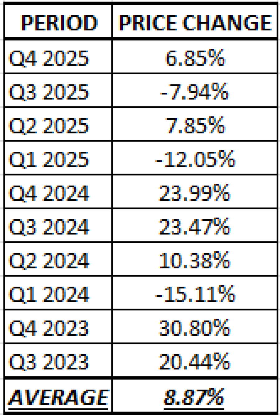 - KRETANJE CENA AKCIJA: U POSLEDNJIH 10 TROMESEČJA CENA AKCIJA JE U PROSEKU RASLA ZA 8,87% DAN NAKON OBJAVE FINANSIJSKOG IZVEŠTAJA. Prema donjoj tablici, akcije su u proseku rasle za 8,87% dan nakon objavljivanja rezultata, uzimajući u obzir poslednjih 10 tromesečja. Poslednji put, nakon što je Palantir izvestio o rezultatima 2. februara nakon zatvaranja tržišta, akcije su sledećeg dana porasle za 6,85%.