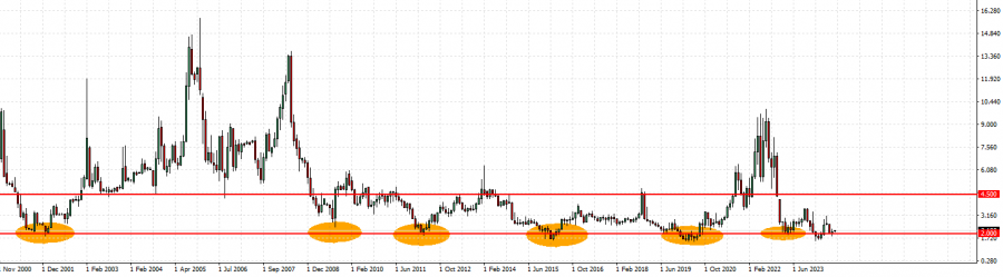 Mesečni grafikon: novembar 2000-jul 2024.