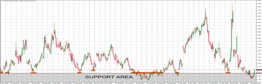 - ZONA PODRŠKE: 3 USD. Od kraja 2024. prirodni gas je održavao snažnu podršku oko 3 dolara, testirajući ovo područje osam puta i potvrđujući ga kao snažno područje podrške. Ovo je deveti put da se kreće blizu barijere od 3 dolara. Međutim, cena bi takođe mogla da se smanji.