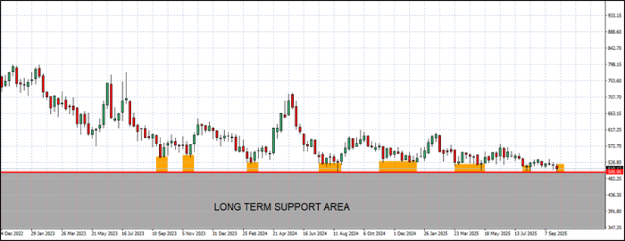 - SNAŽNA PODRŠKA NA OKO 500 USD: Od septembra 2023. pšenica je sedam puta testirala područje oko 500 dolara, a svaki put su se cene oporavljale. Ovo je 8. put u poslednje dve godine da su cene pšenice testirale nivo od oko 500 dolara. (izvor: Fortrade Meta Trader 4).