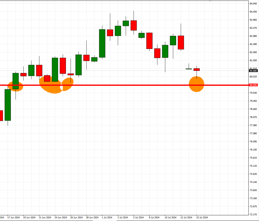 - U POSLEDNJIH MESEC DANA, NIVO OD 80 DOLARA (ILI BLIZU NJEGA) TESTIRAN JE 3 PUTA. Ovo je četvrti put da se cena sirove nafte približava 80 dolara. Tokom proteklog meseca, sirova nafta bi uvek odskočila nakon pada na ili blizu nivoa podrške od 80 dolara.