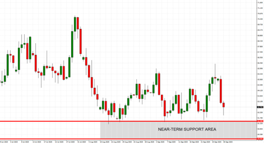 - JAKA ZONA PODRŠKE: 61,5-60 USD. Od početka avgusta, sirova nafta je više puta testirala nivo od 61,50 dolara ili blizu njega, a najnoviji potez označio je peto napuštanje ove zone. Pre toga, nafta je održavala dugoročnu podršku na 60 dolara, koja traje od početka 2021. Grafikon u nastavku pokazuje da su se od početka avgusta, nakon testiranja područja oko 61,50 dolara, cene nafte oporavljale na područje između 64 i 65 dolara.