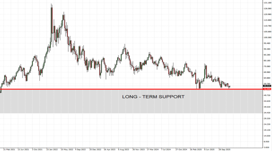 - TEHNIČKA PODRŠKA: 55 USD. Prema dnevnom grafikonu u nastavku, od 2021. godine sirova nafta je četiri puta testirala nivo od oko 55 dolara.