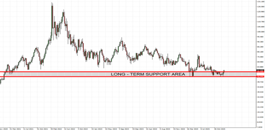 - ZONA PODRŠKE: 55 - 60 USD. Prema dnevnom grafikonu u nastavku, od 2021. godine sirova nafta je pet puta testirala nivo od oko 55 dolara.