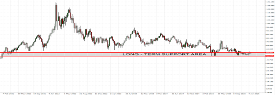 - ZONA PODRŠKE: 55 - 60 USD. Prema dnevnom grafikonu u nastavku, od 2021. godine sirova nafta je pet puta testirala nivo od oko 55 dolara.