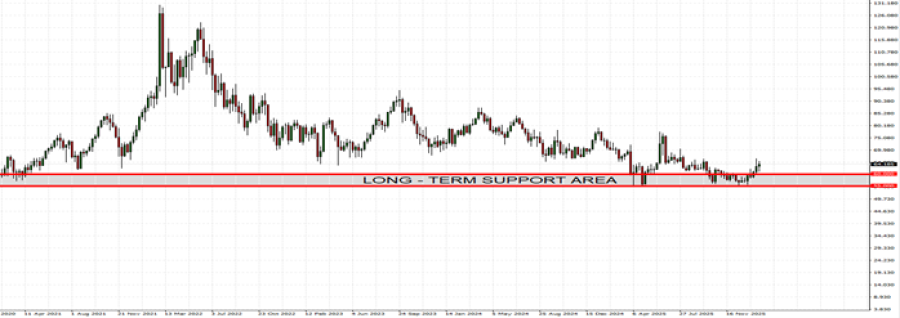 - ZONA PODRŠKE: 55 - 60 USD. Prema dnevnom grafikonu u nastavku, od 2021. godine sirova nafta je pet puta testirala nivo od oko 55 dolara.