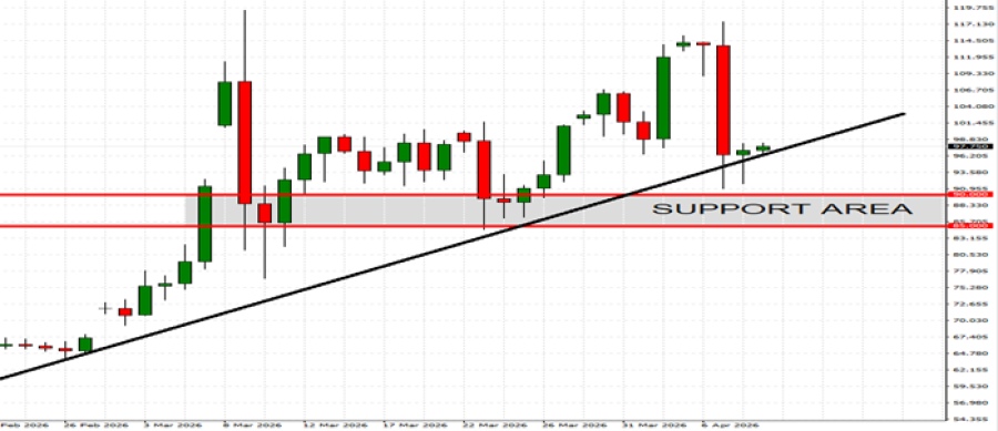 - ZONA PODRŠKE: 90 - 85 USD. Cene sirove nafte i dalje pronalaze podršku oko 90-85 dolara po barelu, trend koji se nastavlja barem od početka marta 2026. Ranije u martu, cene sirove nafte porasle su na najvišu stopu od juna 2022. (119,40 USD). Sirova nafta je u jednom trenutku porasla za oko 77% od početka rata, dosegnuvši cene koje nisu viđene u gotovo četiri godine i podigavši tržište iznad 90-85 dolara.