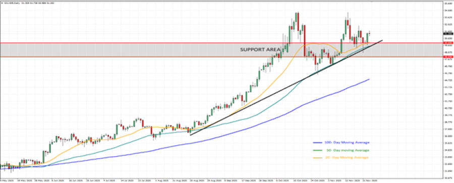 - UZLAZNI TREND U 2025: Nakon pada cena u martu-aprilu, cene srebra od tada se kreću uzlaznim trendom, kao što je prikazano na donjem dnevnom grafikonu i linijom uzlaznog trenda. Od početka 2025. cena srebra neprestano raste, dosegnuvši novi najviši nivo u oktobru (54.454 USD), što predstavlja rast od oko 88%. Međutim, cena bi takođe mogla da se smanji.