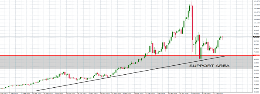 - ZONA PODRŠKE: 70 USD. Nakon poslednjeg pada korekcije cena je početkom februara testirala područje podrške oko 70 dolara.