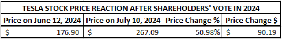 - POSLEDNJI PUT (13. JUNA 2024): GODIŠNJA SKUPŠTINA AKCIONARA 2024. AKCIONARI SU GLASALI ZA ISPLATU IZVRŠNOG DIREKTORA MASKA. Prema agenciji Reuters, akcionari su odobrili 56 milijardi dolara isplate izvršnom direktoru Masku, što je veliko odobrenje za njegovo vođstvo i podsticaj da se usredsredi na svoj najveći izvor bogatstva. Ovo odobrenje je naglasilo podršku koju Mask uživa od maloprodajnih ulagača, od kojih su mnogi veliki Maskovi obožavatelji. Ovaj je predlog usvojen uprkos protivljenju nekih velikih institucionalnih investitora i posredničkih kompanija.