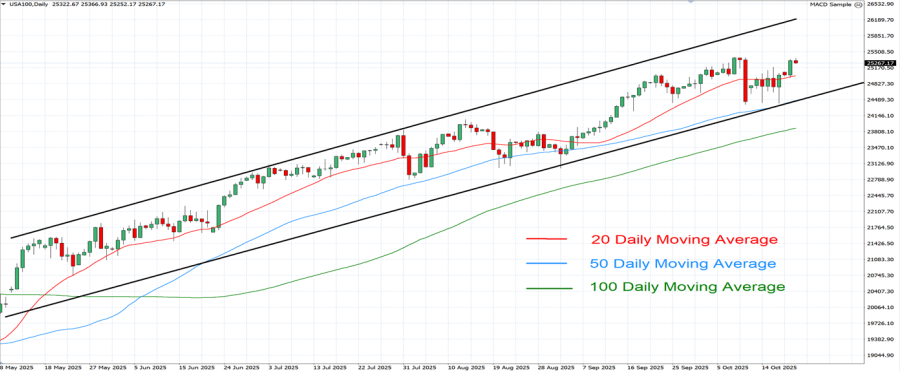 - KRETANJE CENA: Indeks USA100 porastao je za otprilike 19% od početka 2025. godine. GODINE.