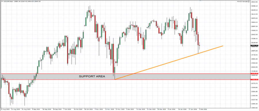 - PODRUČJE PODRŠKE: 23,900-24,100. Ova zona predstavlja sledeću zonu podrške za USA100.