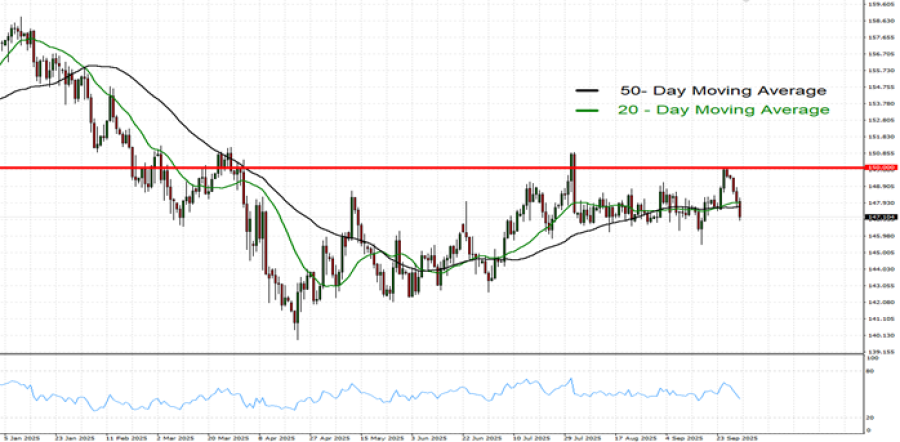 Par USD/JPY, 1. oktobar, 2025.