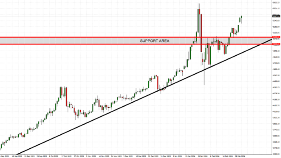 - ZONA PODRŠKE: 5.100 - 5.000 dolara. Cena zlata je pronašla zonu podrške u rasponu od 5.100 do 5.000 dolara. Međutim, cena bi takođe mogla da se smanji.