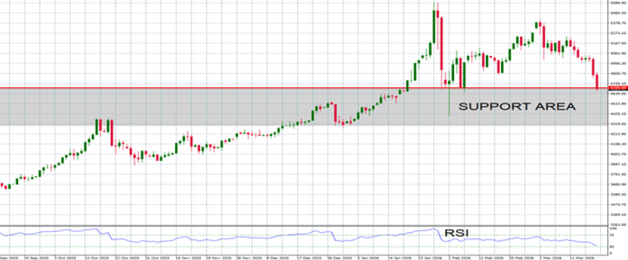 - ZONA PODRŠKE: 4,700 USD. Nedavni pad doveo je cenu zlata na novu ključnu stopu podrške oko 4.700 dolara. Ovo područje može delovati kao kratkoročni minimum, iako će stalni proboj ispod njega signalizirati dalji rizik od pada.